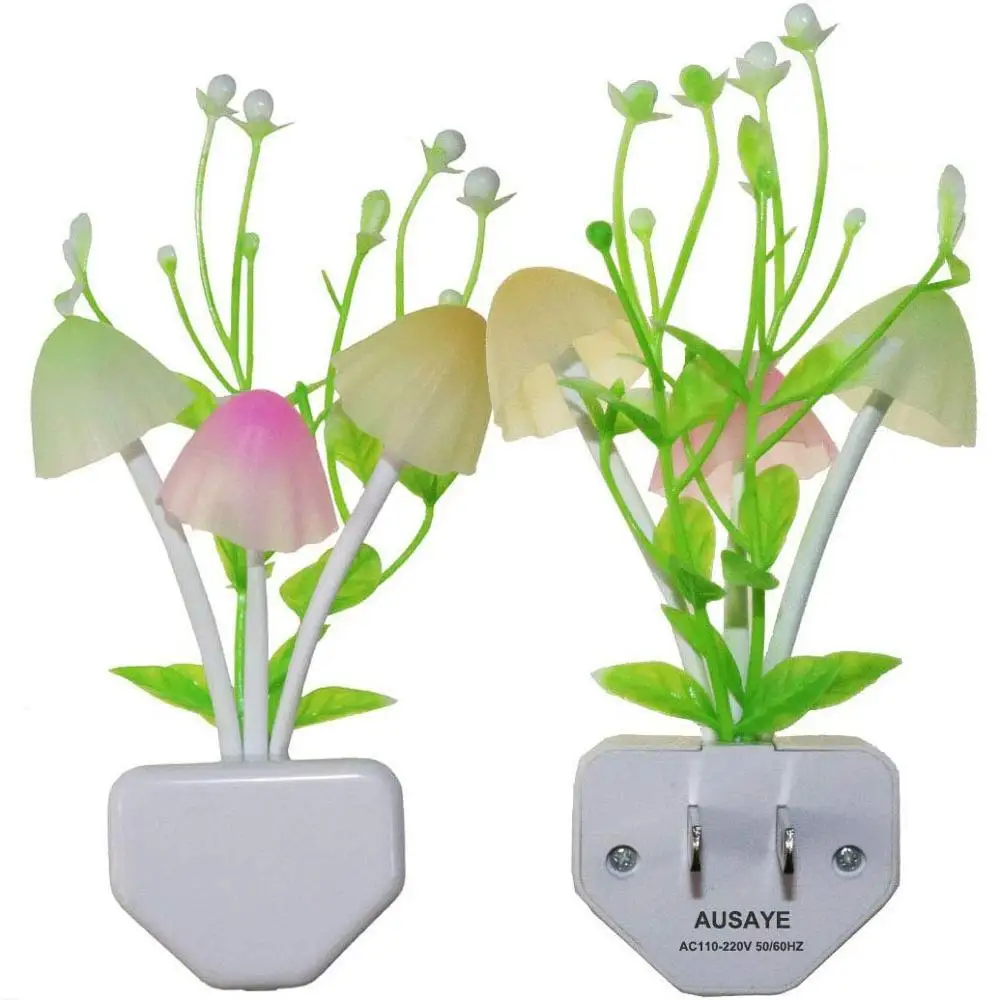 Review 2 PCS Color Changing Nursery Mushroom Night Light Plug in Led Wall Lamp with Dusk To Dawn Sensor Fo