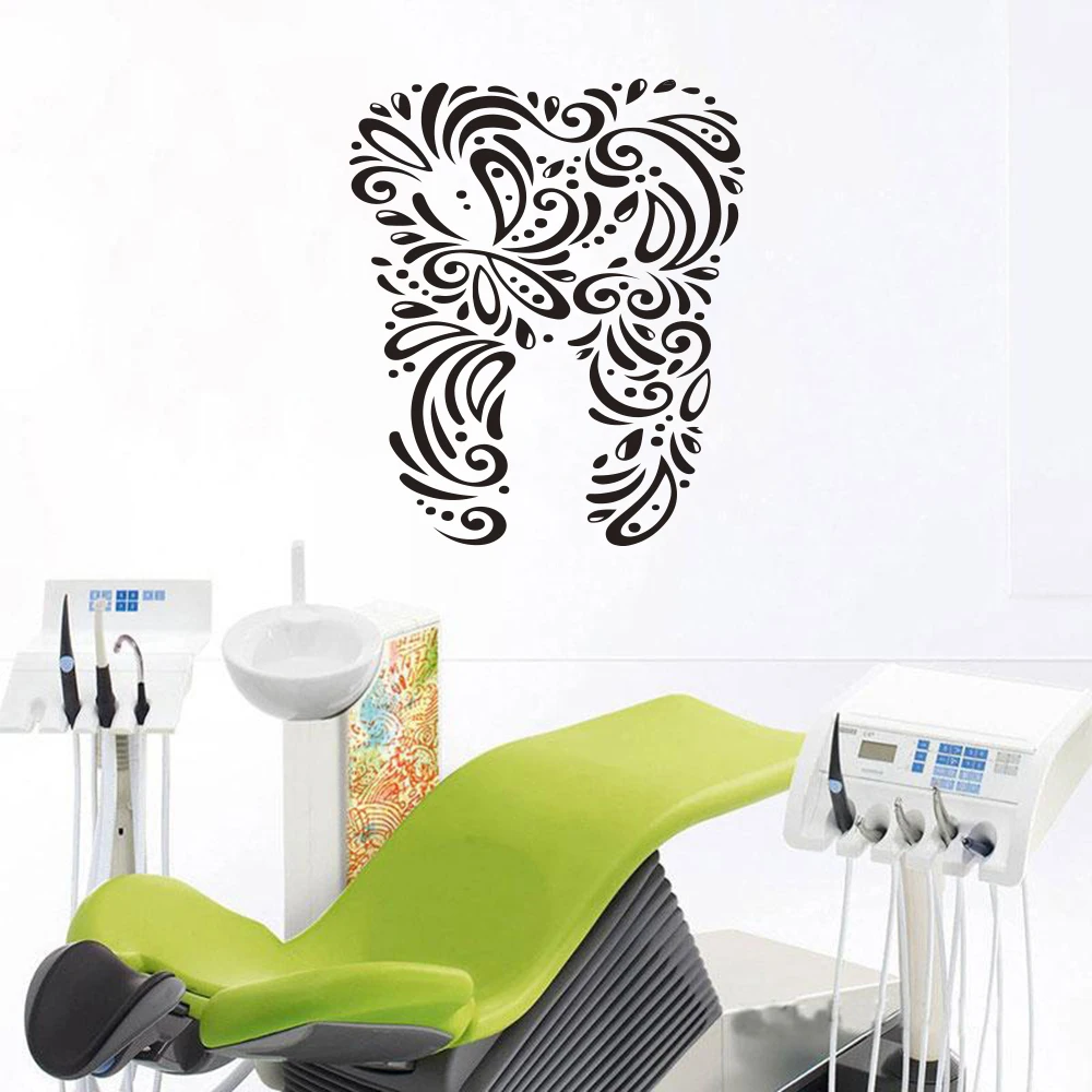 Hot Sale Abstract Teeth Dental Wall Decal Bathroom Flower Dentist Dental Clinic Tooth Wall Sticker Dentist C